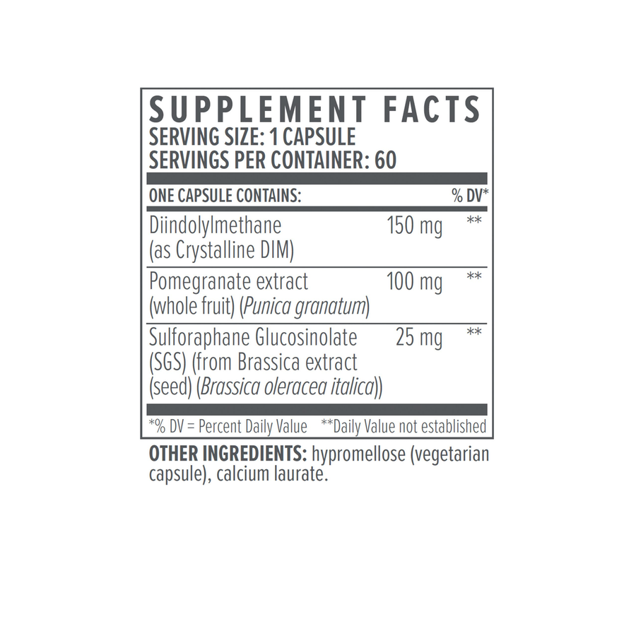 This nutraceutical contains extracts from broccoli and pomegranate that may support the healthy utilization of estrogen in both men and women.